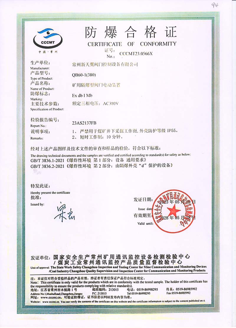隔爆型QB QBZ QBT 220380中國國家強制性產(chǎn)品認(rèn)證證書107.2