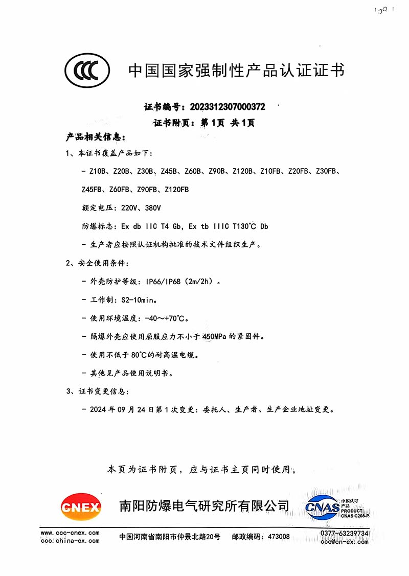 防爆Z10B Z10FB國家強制性產(chǎn)品認(rèn)證CT4證書109.1