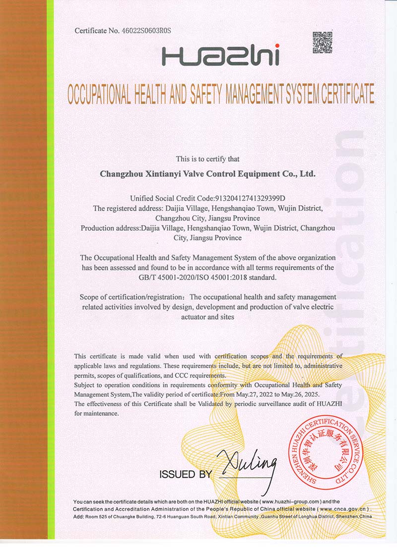 職業(yè)健康管理體系認(rèn)證證書 英文版